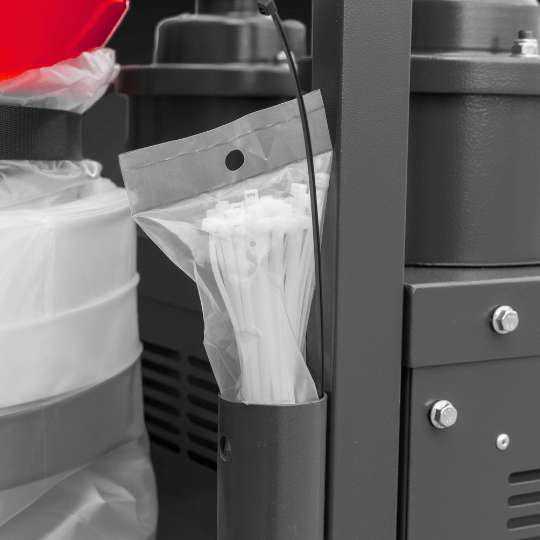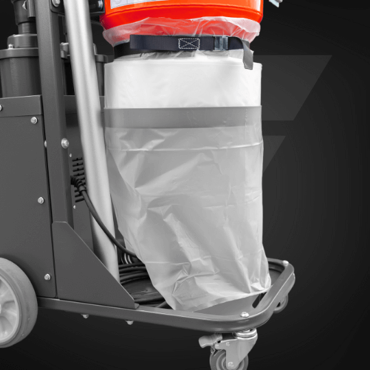 Długi worek umożliwia opróżnianie odkurzacza bez kontaktu z pyłem. Odcinany, skręcany opaską i przekazywany do utylizacji — prosto, czysto i w pełni zgodnie z BHP.