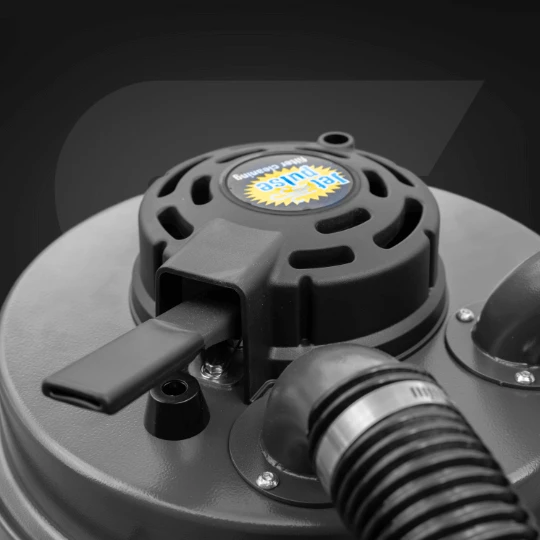 Wystarczy zamknąć zasuwę na wlocie i nacisnąć dźwignię, aby wykonać efektywne przedmuchanie wstępnego filtra. Bez odpinania węża, bez rozkręcania obudowy — szybciej i czystej niż w odkurzaczach konkurencji.