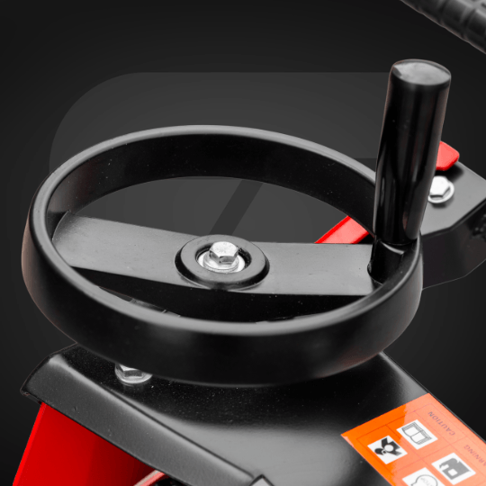 Dzięki płynnej regulacji z amortyzacją oraz systemowi blokad można ustawić głębokość cięcia z wyjątkową dokładnością. Skalowana pod tarcze 350–500 mm — zawsze wiesz, na jakiej głębokości pracujesz.