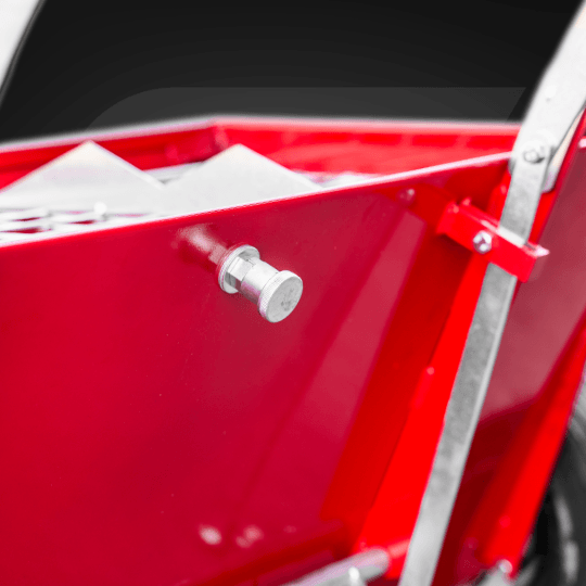 Pojemny zbiornik pozwala rozsiewać dużą ilość materiału bez częstego uzupełniania. To większa wydajność pracy przy dużych powierzchniach posadzek.