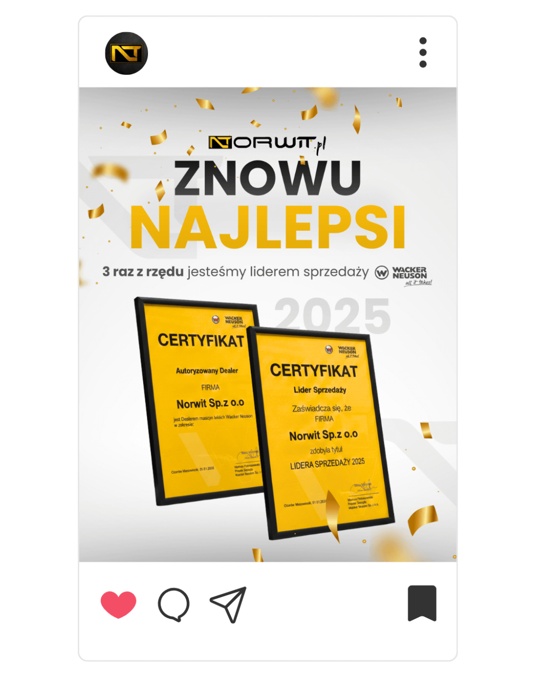 Od 3 lat z rzędu jesteśmy Liderem Sprzedaży Wacker Neuson. To dla nas potwierdzenie, że uczciwe doradztwo, dobra współpraca i realne wsparcie klientów mają znaczenie.